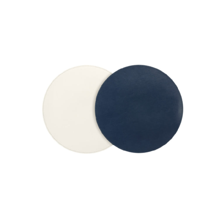 FOH®, RTL019BLL23, Reversible Mat/Liner, 12"W x 12"D x 0"H, Round, Faux Leather, Navy/White/Blue, room360® - London (Packed By: 12 Each Per Case)