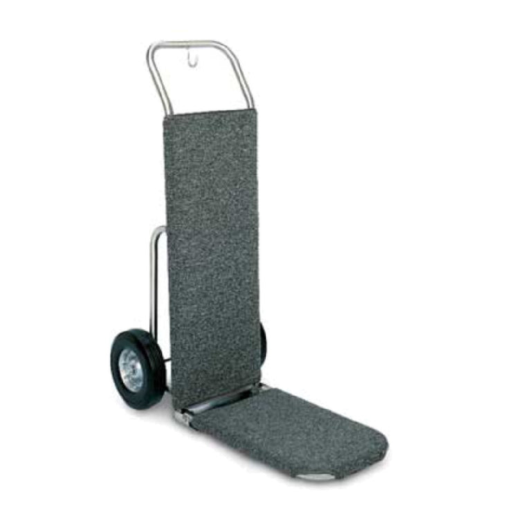 The Forbes Industries 1550-CK Bellman's Handtruck Standard 24"L Dropnose is a robust and versatile solution for efficient material handling across hospitality and service industries. This handtruck is constructed with 1" brushed stainless steel, offering a combination of durability and aesthetic appeal, ideal for environments where both function and style are paramount. It features a 24"L dropnose design, providing stability and ease when transporting luggage, packages, or supplies. The handtruck is equipped with a carpet kit on both the back and the dropnose, ensuring that items are transported with minimal risk of damage, making it suitable for high-end hotels and resorts. The 1550-CK is designed with 10" diameter black zero-pressure wheels, which allow for smooth maneuverability over various terrains and reduced maintenance concerns, crucial for busy operations where reliability is essential. This handtruck is an excellent choice for facilities that require a balance of performance and elegance, catering to diverse market segments that prioritize both functionality and presentation.