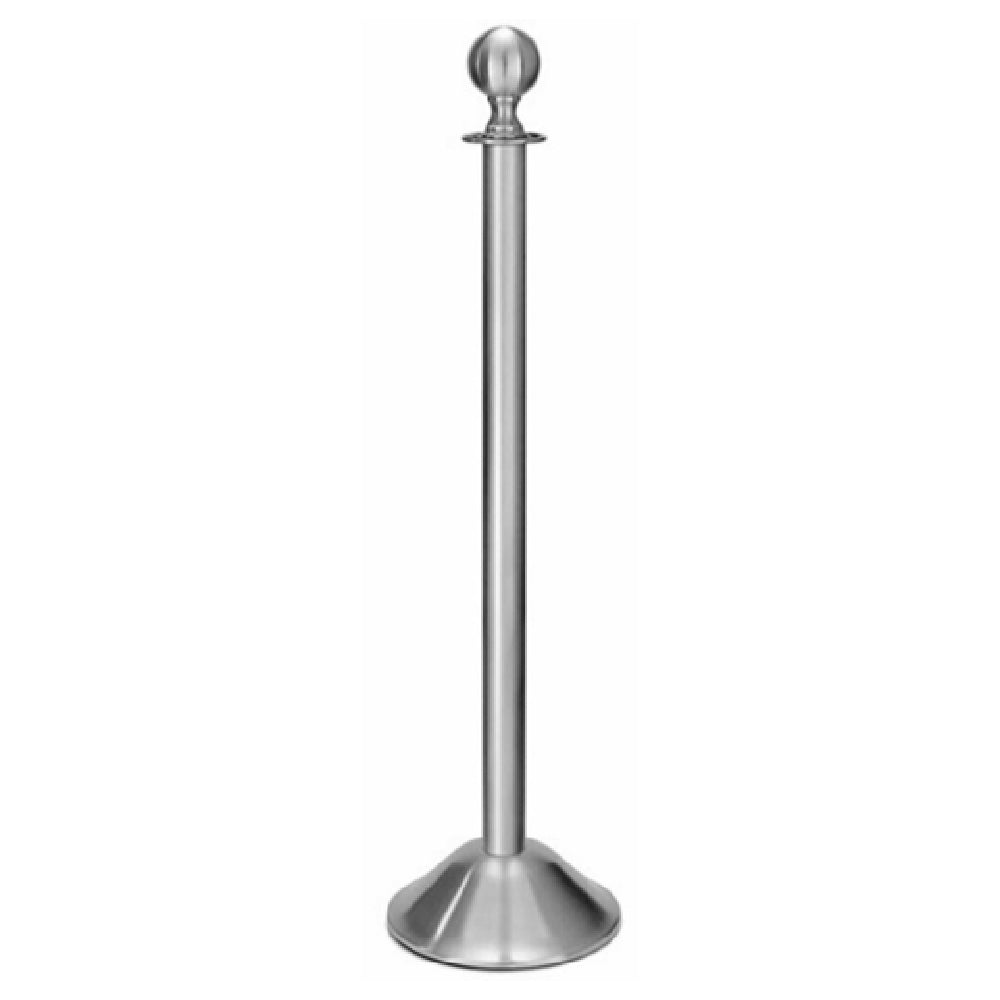 The Forbes Industries 2734 Traditional Series Post embodies a classic design combined with the durability of brushed stainless steel, making it a preferred choice across various segment markets. This product features a distinctive ball finial, adding a touch of elegance and sophistication to its appearance. The post is supported by an 11-inch weighted bell base, ensuring stability and robustness in its applications. The brushed stainless steel not only enhances its aesthetic appeal but also provides excellent resistance to corrosion and wear, making it suitable for high-traffic environments. Whether used in hospitality, event management, or public spaces, this post's traditional design seamlessly integrates with a variety of interior and exterior decor themes. Its construction promises longevity and reliability, offering assurance of minimal maintenance over time. The Forbes Industries 2734 Traditional Series Post effectively combines classic aesthetics with modern durability, serving as a multifunctional solution for industry needs.