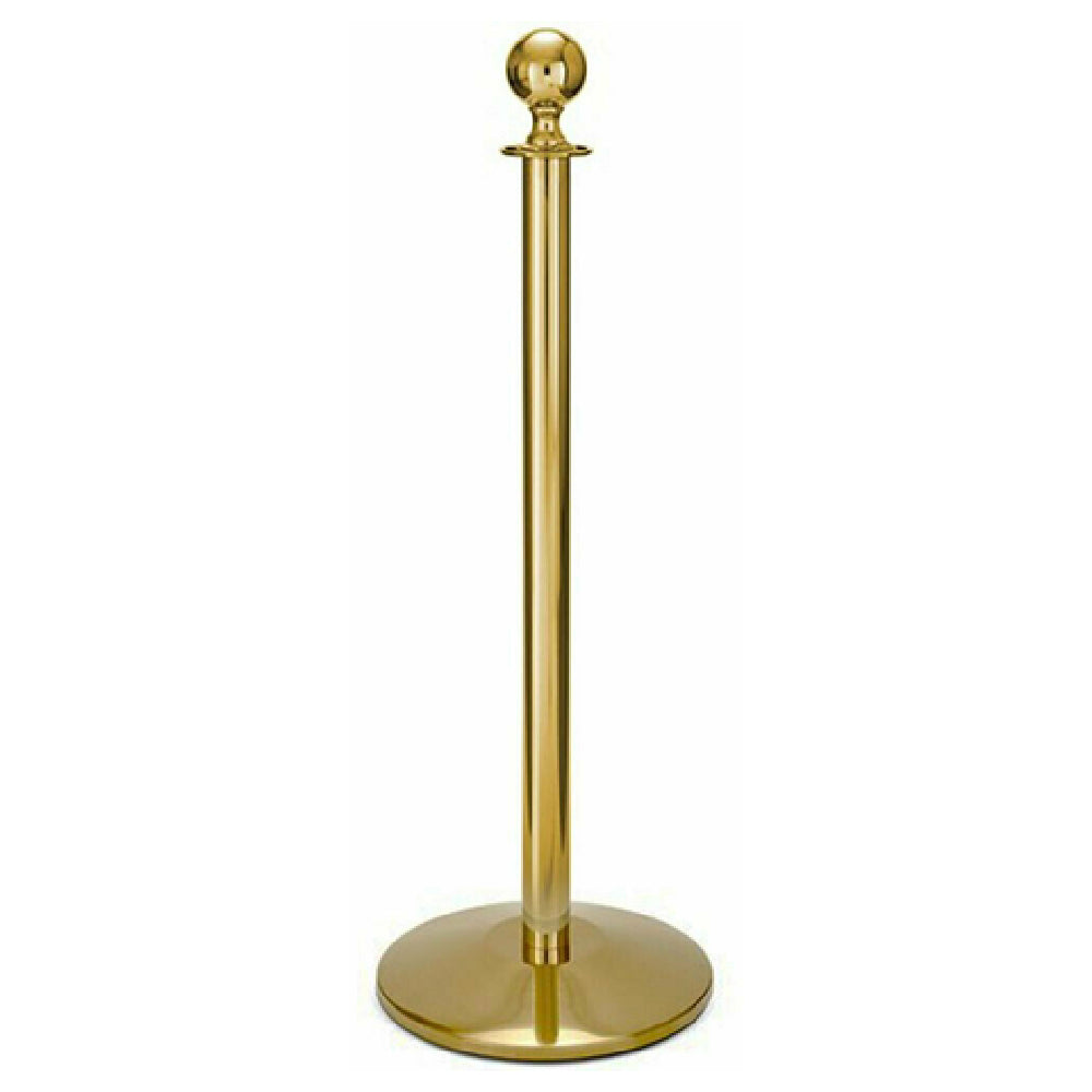 The Forbes Industries 2747 Contemporary Series Post boasts a classic design, crafted from polished solid brass, which delivers both elegance and durability. This post features a sophisticated ball finial, adding a touch of refinement to any space it occupies. The design is complemented by a 14-inch weighted flared base, ensuring stability and reducing the risk of tipping over. The solid brass construction not only enhances its visual appeal but also guarantees longevity, making it an excellent investment for high-traffic environments. This product is ideally suited for use in upscale venues such as hotels, conference centers, and event spaces, where an aesthetic blend of functionality and style is paramount. The Forbes Industries 2747 is part of the Contemporary Series, which is known for marrying traditional design elements with modern sensibilities, providing a versatile solution for various market segments within the hospitality and event management industries. Its robust construction and elegant appearance make it a standout choice for businesses seeking to impart a sense of luxury and sophistication in their décor. Whether employed as a crowd control accessory or simply as a decorative element, this post serves its purpose with distinction, offering both practical benefits and an upscale aesthetic.