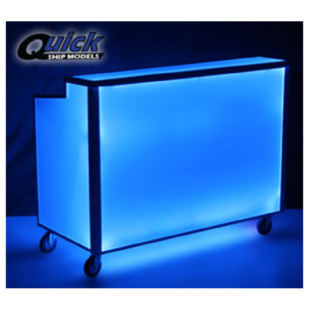 The Forbes Industries 4863-5-W Luxe Series Mobile Bar is an expertly designed unit measuring 30"W x 60"L x 47"H, crafted to elevate mobile beverage service with its striking white acrylic panels and countertop. The bar's powder-coated steel frame ensures durability and a modern aesthetic, making it suitable for diverse environments from upscale events to hospitality venues. Equipped with two plastic ice bins and a heavy-duty plastic working counter, it facilitates efficient service. Additionally, the two 18" stainless steel speed rails are designed to accommodate standard glass racks, enhancing functionality for bartenders. An integrated LED lighting system, controlled via remote, adds ambiance and visual appeal, making it a standout feature for evening settings. Mobility is ensured with 5" grey wheels on zinc-plated casters, allowing for easy repositioning. This mobile bar represents a blend of durability, style, and functionality, catering to the unique needs of the hospitality and event management sectors, where both aesthetics and practicality are paramount.