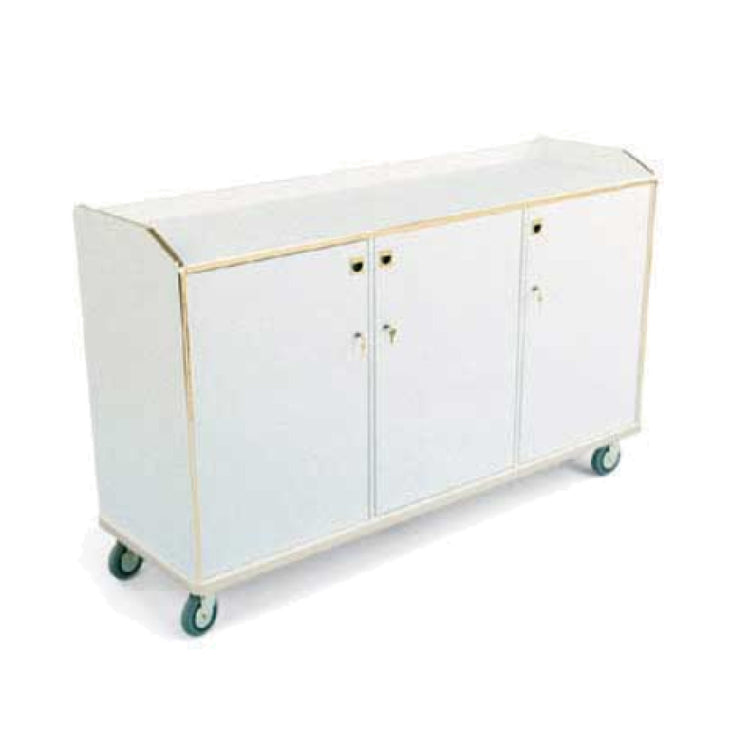 The Forbes Industries 4882 Mobile Back Bar is a meticulously designed unit that combines functionality and aesthetic appeal, making it perfect for a variety of hospitality settings. Measuring 72 inches in width, 23 inches in depth, and 40-1/2 inches in height, this mobile back bar provides ample space for storage and service. The high-pressure laminate body ensures durability and a sleek appearance, ideal for high-traffic environments. Its three-sided top offers versatility in serving arrangements, while the inclusion of three locking doors, each equipped with a shelf, provides secure storage solutions to keep your items organized and easily accessible. This mobile back bar is particularly advantageous for busy hotels, event venues, or catering services that require flexible setup options and reliable storage. The Forbes Industries 4882 is engineered to meet the evolving demands of the service industry, offering a blend of practicality and style. Its robust construction and thoughtful design details make it an invaluable addition for professionals seeking efficiency and elegance in their service operations.