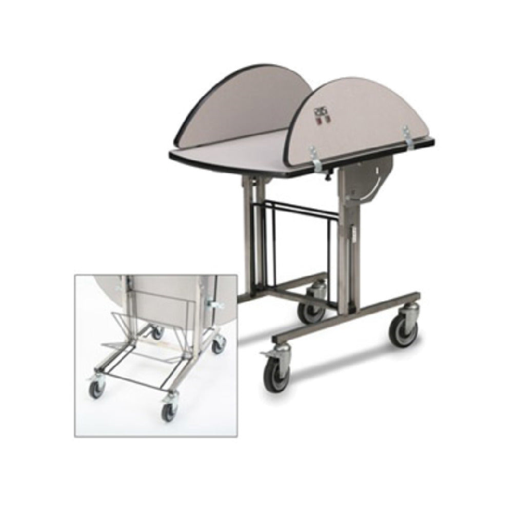 The Forbes Industries 4960-WDS Ultra Series Room Service Table is a versatile and durable solution for hospitality environments, offering a blend of functionality and aesthetic appeal. Measuring 36 inches in length and 43-1/2 inches in width, this table features a tilt-up oval top made from stone matrix high-pressure laminate, providing a robust surface that is resistant to scratches and stains. The table is designed with a vinyl T-mold edge for added durability, and includes two tri-fold drop leaves for adaptable space management. Mobility and stability are ensured with four swivel wheels, two of which are equipped with brakes for secure positioning. The fixed vinyl-dipped hot box rails and drop shelf add practicality, offering convenient storage and support for service items. Its all-welded stainless steel square tube frame with a brushed finish ensures long-lasting use and a modern look that complements various interior designs. This room service table is an excellent choice for hotels, resorts, and other establishments seeking a reliable and stylish option for room service dining that enhances guest experience and operational efficiency.