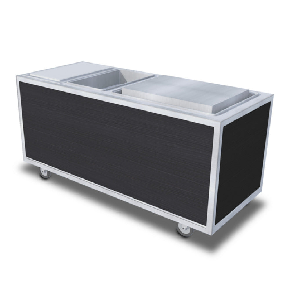 The Forbes Industries 5001-951-SS Action Station 6' Claremont Panels Three-sided Cabinet is a sophisticated piece of equipment designed for versatile use in the food service industry. This unit features a brushed stainless steel frame, providing durability and a sleek appearance that fits seamlessly into modern culinary environments. With dimensions of 72 inches in length, 30 inches in width, and 35.25 inches in height, it offers a substantial workspace. The cabinet includes an Expandable Kit with a Frost Top-2 Pan-fixed design, an Insulated Ice Pan Well, and a Poly Cutting Board tile, enhancing its utility for various food preparation needs. The plug-in capability operates at 120 volts and 15 amps, ensuring efficient energy use. This Action Station is especially beneficial for catering services, buffets, and live cooking setups where functionality and aesthetics are paramount. The combination of high-quality materials and thoughtful design elements makes the Forbes Industries 5001-951-SS a practical choice for professionals seeking a reliable and stylish solution for their food presentation and preparation requirements.
