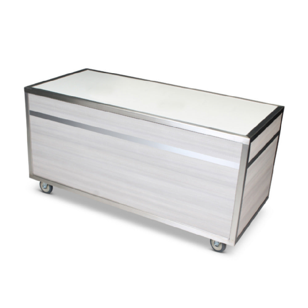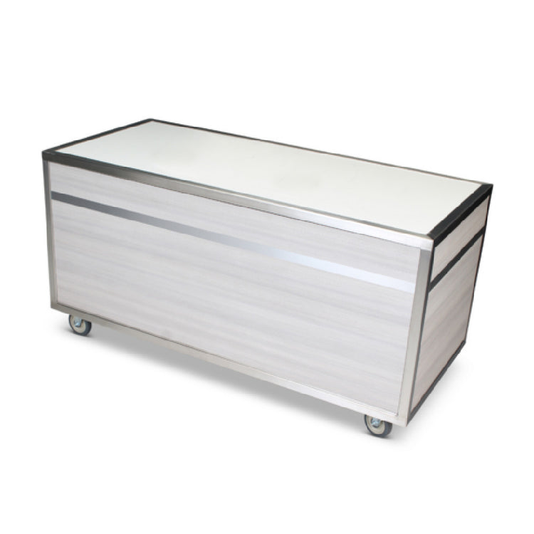 Forbes Industries, 5010, Live Action & Buffet Station body only, 72”L x 30"W x 36”H, three-sided stainless cabinet finished in HPL, Avonite countertop, stainless steel trim and frame, middle and bottom shelves are finished with HPL, 5” wheels in swivel casters, concealed