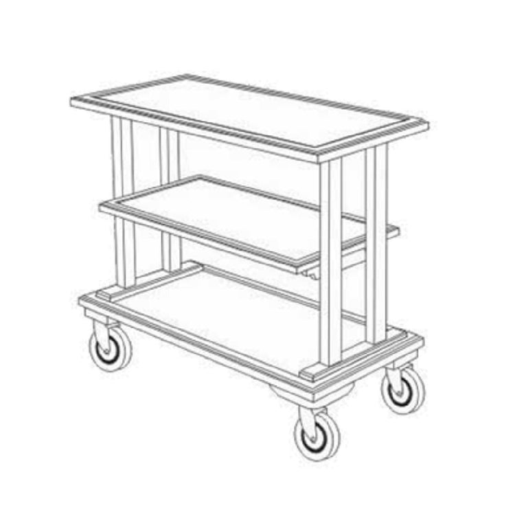 The Forbes Industries 5534 Service Cart is an expertly crafted open cart featuring three wood veneer shelves, each designed to provide ample space for service needs across various industry sectors. This service cart is distinguished by its solid wood construction, including solid wood square posts that ensure stability and durability, and a wood top that adds a touch of elegance to any setting. The shelves are meticulously finished with wood veneer, offering a sophisticated look that complements its functional design. The solid wood molding enhances its aesthetic appeal while providing additional structural integrity. This cart caters to diverse markets, from high-end hospitality settings to corporate environments, offering a blend of practicality and style. The open design facilitates easy access and quick service, making it a valuable asset for efficient operations. Its robust construction and elegant design make the Forbes Industries 5534 Service Cart a versatile and reliable choice for businesses seeking quality service solutions combined with a refined appearance. Whether used for serving guests or transporting items, this cart underscores Forbes Industries' commitment to craftsmanship and functional design.