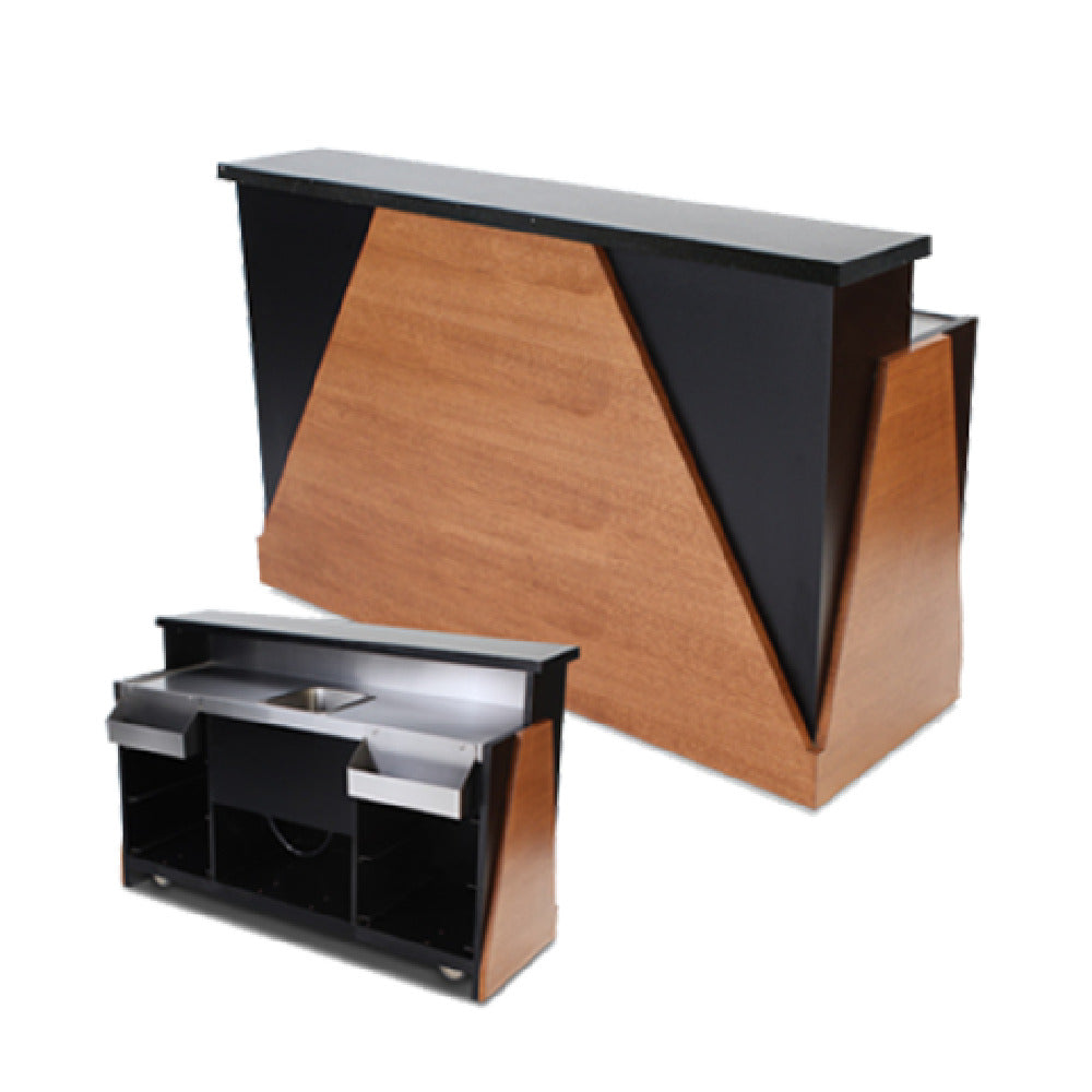 The Forbes Industries 5777-6 Mobile Bar is a versatile and stylish solution for hospitality venues seeking a blend of functionality and aesthetic appeal. Measuring 26 inches in width, 76 inches in length, and 48 inches in height, this mobile bar features a generous 6-foot bar length, ideal for a variety of service scenarios. The Zen design is highlighted by a black laminate cabinet complemented by a raised wood veneer, offering a sophisticated look that suits modern decor. Its Avonite countertop not only adds to its elegance but also provides a durable surface for bar operations. The stainless steel working countertop ensures easy maintenance and longevity, while the inclusion of one stainless steel sink with a drain enhances its practicality for bartenders. Additionally, the two 18-inch stainless steel speed rails are ideal for quick access to frequently used bottles, boosting efficiency during service. Mobility is effortlessly achieved with its caster wheels, making it a convenient choice for events and functions that require adaptable serving stations. The Forbes Industries 5777-6 Mobile Bar is a functional and attractive asset for hotels, restaurants, and event spaces looking to elevate their beverage service with a touch of elegance and practicality.