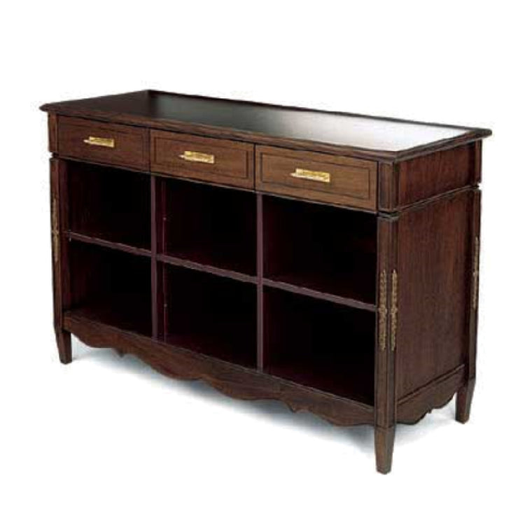 The Forbes Industries 5984 Waiter's Station is a meticulously crafted piece, featuring a wood veneer with an inlaid high-pressure laminate top that seamlessly combines durability with elegance. This station is thoughtfully designed with three drawers, providing ample storage space for organizing essential items efficiently. Additionally, it includes three open sections, offering versatile storage options to cater to various needs in the hospitality industry. The high-pressure laminate top enhances the station's resilience, making it suitable for high-traffic environments while maintaining a sophisticated appearance. The wood veneer adds a touch of classic charm, ensuring the station complements any upscale restaurant or hotel setting. This waiter's station is an ideal choice for establishments seeking a blend of practicality and aesthetic appeal, allowing for streamlined service operations. Its robust construction and functional design make it a valuable asset for any food service environment, delivering both reliability and style.