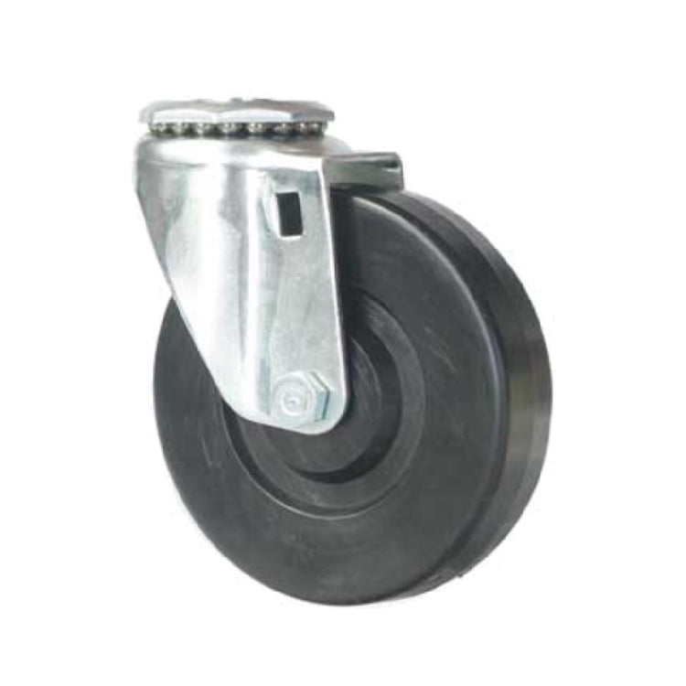 The Forbes Industries 6041-ST Replacement Caster - 4" Dia. Black Wheel is a specialized component designed for use with room service tables, specifically models #4952, #4953, #4955, and #4956. This caster features a 4-inch diameter black wheel, providing a balance of durability and smooth mobility crucial for the hospitality industry. The swivel stem mechanism ensures easy maneuverability, allowing for seamless movement of service tables even in confined spaces. Constructed with a zinc-plated finish, this component offers enhanced resistance to corrosion, making it a reliable choice for environments where the longevity of components is paramount. This caster is particularly valuable for hotels, conference centers, and catering services that require robust and adaptable mobility solutions for their service equipment. By maintaining functional integrity and aesthetics, the Forbes Industries 6041-ST Replacement Caster meets the operational demands of high-traffic service areas, ensuring that service tables remain mobile and efficient irrespective of the layout or surface. The precise engineering of this caster highlights its role in optimizing service operations, offering an essential replacement part that aligns with the technical and practical needs of professional service environments.