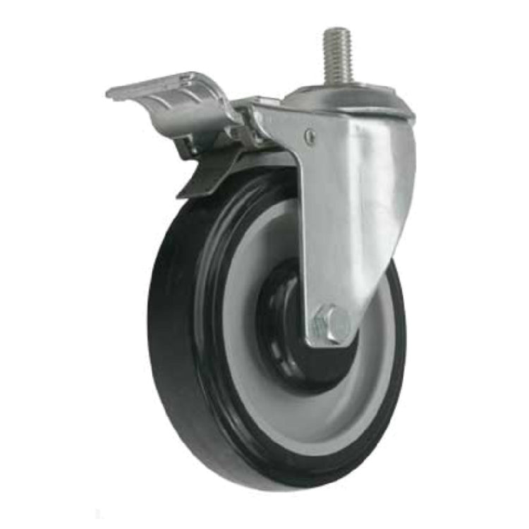 The Forbes Industries 6045-ST\BK Replacement Caster 5" Dia. Black Wheel is a versatile component designed to enhance the functionality of Ultra Series tables, specifically models #4941-4948 and #4959-4963. This replacement caster features a 5-inch diameter black wheel, offering a perfect blend of durability and smooth mobility. The inclusion of a swivel stem allows for ease of movement in tight spaces, making it an essential addition for settings requiring frequent repositioning of tables. Its zinc-plated finish ensures protection against corrosion, extending the caster's lifespan. Additionally, the caster comes with a brake kit, providing stability and preventing unintended movement, thereby enhancing safety. This product is specifically engineered to meet the needs of various market segments, from hospitality venues to conference centers, where reliability and ease of use are paramount. Its integration into existing equipment is seamless, ensuring that establishments can maintain operational efficiency without compromising on quality. The Forbes Industries 6045-ST\BK Replacement Caster stands out as a crucial accessory for maintaining the functionality and safety of high-use tables, contributing to the overall effectiveness of the service environment it supports.