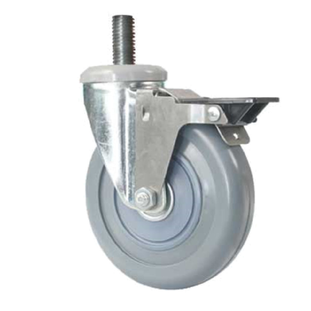 The Forbes Industries 6051-ST\BK Replacement Caster is a specialized component designed to enhance mobility and versatility across various industrial settings. Featuring a 5-inch diameter soft ride special non-marking grey wheel, this caster is engineered to protect floors while providing smooth, silent movement, ideal for environments where noise reduction and floor preservation are key, such as hospitals and hotels. The wheel's non-marking grey material ensures no unsightly marks are left behind, maintaining the aesthetic integrity of the workspace. Equipped with a zinc-plated swivel stem, this caster offers robust corrosion resistance, ensuring longevity and reliability even in harsh conditions. The included zinc-plated brake kit adds an extra layer of safety and control, allowing users to easily secure their equipment in place. The Forbes Industries 6051-ST\BK Replacement Caster is particularly advantageous for industries that require frequent repositioning of heavy carts and equipment, such as food service, hospitality, and healthcare. Its thoughtful design and durable construction make it a dependable choice for professionals seeking a reliable mobility solution that combines functionality with floor protection.
