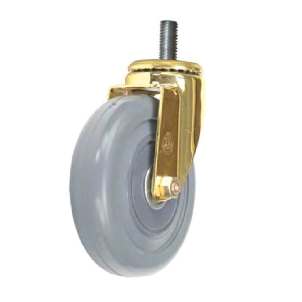 The Forbes Industries 6052-ST Replacement Caster 5" Dia. Grey Non-marking Soft Ride Wheel is a versatile component designed for various industry applications requiring smooth and efficient mobility. Featuring a 5-inch diameter soft ride wheel, it ensures effortless transit over diverse surfaces while minimizing noise and preventing floor marks, a significant advantage in environments with delicate flooring. Crafted with a grey non-marking material, this wheel maintains the pristine condition of surfaces, making it a valuable asset in hotels, hospitals, and corporate settings where aesthetics and cleanliness are paramount. The brass-plated finish adds a touch of durability and resistance to corrosion, ensuring longevity in demanding environments. The caster is equipped with a swivel stem, allowing it to pivot seamlessly for enhanced maneuverability, especially in tight spaces. Additionally, the inclusion of threadguards prevents debris from getting tangled within the wheel, reducing maintenance needs and prolonging the caster's life. Whether used in hospitality trolleys, medical equipment, or office furniture, the Forbes Industries 6052-ST Replacement Caster combines practicality with premium design, catering to the diverse needs of professionals who demand reliability and efficiency in their operations.