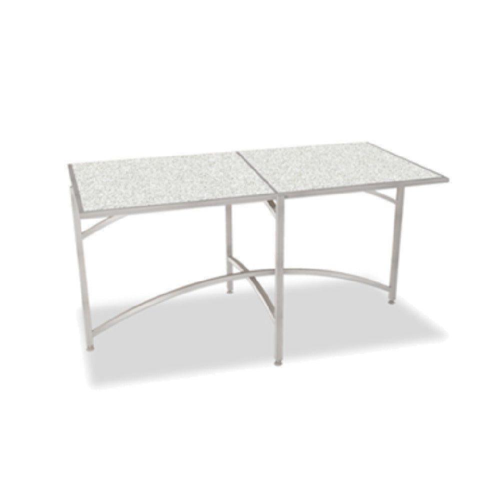The Forbes Industries 7043T-30 EcoFlex Elite Trend Series Table is a versatile and sophisticated addition to any setting. This rectangular table measures 72 inches in length, 36 inches in width, and 30 inches in height, making it a substantial piece suitable for various environments. The unique design features a collapsible structure, allowing for easy storage and transport. The trend glass/stone top provides a modern aesthetic, while the stainless steel tube frame and side mount legs ensure durability and stability, complemented by a brushed finish for a sleek look. This table is NSF certified, meeting high standards for public health and safety. The EcoFlex Elite Trend Series Table is especially valuable in hospitality and catering sectors, where its combination of style, practicality, and compliance can enhance both the functionality and visual appeal of a space. Its robust construction and elegant design make it a reliable choice for professional use, supporting diverse needs across different market segments within the industry. Whether employed in a hotel banquet room or a corporate event space, this table stands out with its thoughtful engineering and commitment to quality.