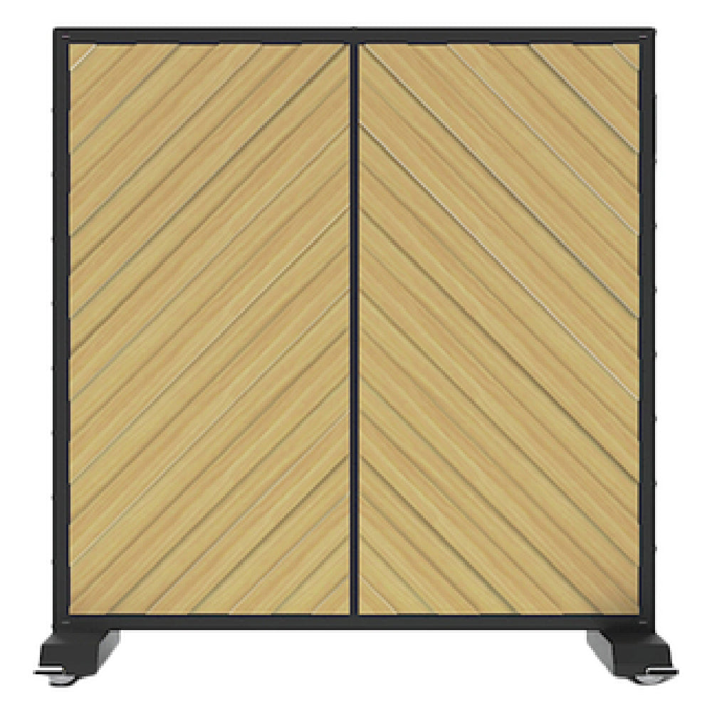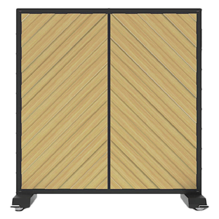 The Forbes Industries 7873-6 Aspen Series Mobile Partition (Executive) is an expertly crafted mobile partition that stands out in its category for its elegance and functionality. With overall dimensions of 73-3/4"L x 29-3/4"W x 78"H, this unit is designed to provide both privacy and aesthetic appeal in professional environments. It features a 6-foot chevron pattern panel constructed with stained hardwood slats, offering a customizable finish to suit various interior designs. The partition is supported by an epoxy powder-coated steel frame, which allows for color specification, ensuring it integrates seamlessly into the space it occupies. Base caps with corner bumpers add to its durability and ease of maneuverability, making it a practical solution for dynamic workspaces. This mobile partition is ideal for executive settings, hospitality venues, or conference areas, where flexibility and sophistication are paramount. The combination of high-quality materials and thoughtful design establishes this product as a versatile and reliable choice for businesses seeking to enhance their interior layout with a touch of class and functionality.