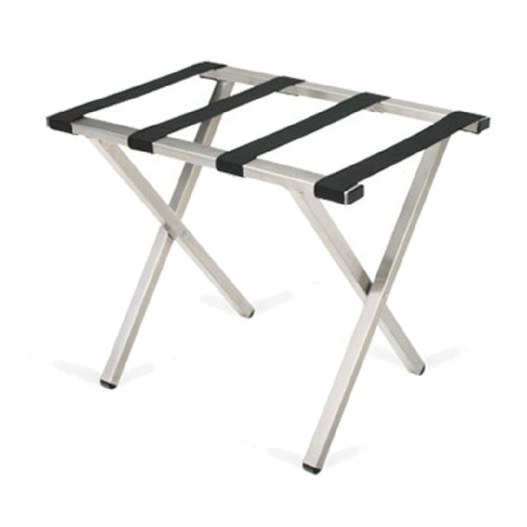 The Forbes Industries 804-SS Luggage Rack is a meticulously crafted unit measuring 24-1/4"W x 16"D x 21"H, designed to enhance guest experiences in hospitality settings with its robust rectangular/square steel tube construction. This luggage rack features four black poly straps, providing a stable and reliable surface for holding guests' luggage. The brushed stainless steel finish not only adds a touch of elegance but also ensures durability and resistance to corrosion, making it an ideal choice for hotels, resorts, and other accommodations seeking long-lasting utility furniture. Its compact dimensions allow for easy placement in guest rooms without compromising on space, while the sophisticated design complements various interior decors. The Forbes Industries 804-SS Luggage Rack is engineered to meet the practical needs of the hospitality industry, offering a blend of functionality and style that accommodates diverse market segments, from luxury resorts to budget-friendly hotels, ensuring guest satisfaction and operational efficiency.