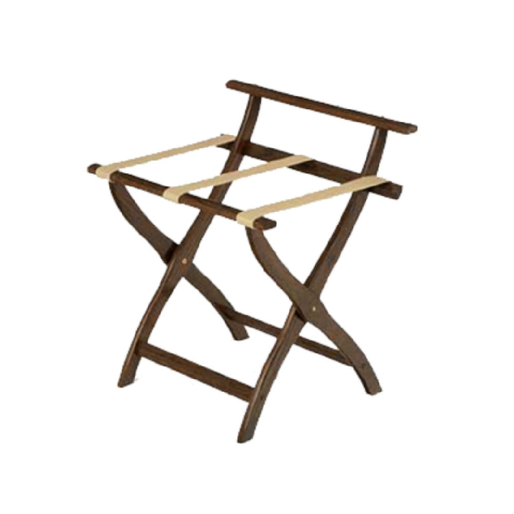 The Forbes Industries 902-DO Luggage Rack is a finely crafted piece designed for both function and style, measuring 24"W x 20"D x 26-1/2"H. Constructed from solid oak, this luggage rack stands out with its durability and elegant dark finish, making it a sophisticated addition to any hospitality setting. The rack features a bumpered back bar, providing an added layer of protection for both the luggage and surrounding surfaces. The contoured legs not only add to the aesthetic appeal but also ensure stable support for all types of luggage. This luggage rack is particularly valuable for upscale hotels and resorts where the presentation and guest experience are paramount. For vacation rentals and boutique accommodations, its robust construction and timeless design offer guests a reliable and stylish option for organizing their travel essentials. Additionally, the rack's solid oak construction ensures it withstands frequent use in high-traffic environments, making it an economic choice for businesses seeking longevity in their furnishings. The Forbes Industries 902-DO Luggage Rack seamlessly combines practicality with elegance, meeting the diverse needs of different market segments within the hospitality industry.