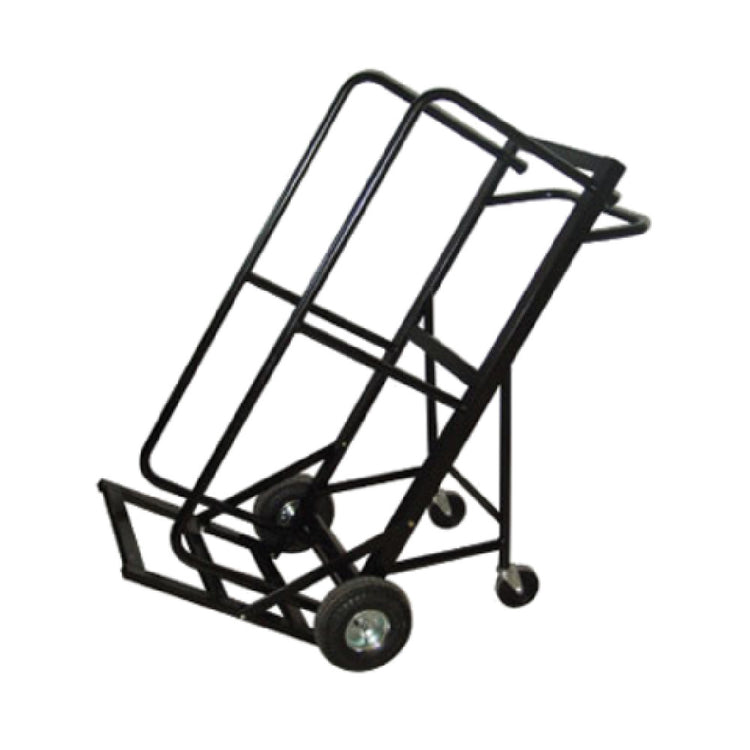 The Forbes Industries HD-SUD Table Truck is an expertly crafted transportation solution, measuring 45 x 30 x 60-1/4 inches in height, designed to accommodate up to seven banquet or training tables. This table truck is engineered with a heavy-duty welded steel frame, ensuring strength and durability for industrial use, and is finished with a black epoxy powdercoat for enhanced protection and a sleek appearance. The design includes a push/pull handle, offering ease of maneuverability in various settings. Its mobility is supported by two 10-inch diameter pneumatic casters and two 5-inch swivel phenolic casters, providing stability and smooth transit across different surfaces. This product is ideal for use in hospitality sectors, conference centers, and educational facilities, where efficient table storage and transportation are essential. The Forbes Industries HD-SUD Table Truck stands out for its robust construction and user-friendly design, catering to the practical needs of staff involved in event setup and breakdown, and making it a valuable asset for organizations requiring reliable equipment handling solutions.