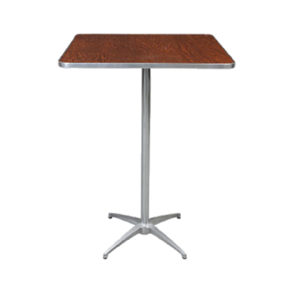 The Forbes Industries HO3636-SK42 200 Series Pedestal Table is a sophisticated piece designed for both functionality and style, featuring a square 36" x 36" tabletop and standing at a height of 42". This table is a three-piece construct that highlights a 5/8" thick plywood top finished with a walnut sealer stain and protected by a UV polycoat, ensuring durability and visual appeal. The edges of the table are reinforced with an aluminum "C" channel, providing stability and a modern touch, complemented by elegantly radius corners for safety and aesthetics. It is supported by a steel tapered column that is securely attached to a k-plate and base, ensuring a sturdy foundation for various uses. This product is shipped KD (knockdown), facilitating easy transport and assembly. The Forbes table's blend of materials and craftsmanship makes it an ideal choice for hospitality venues, meeting rooms, or any setting that values both design and durability. Its unique construction and finish cater to diverse market segments, offering a reliable and stylish solution for businesses seeking quality and sophistication in their furniture selections.