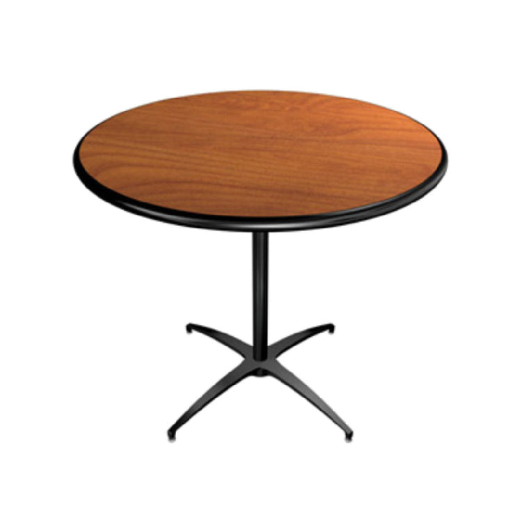 Forbes Industries, REV36RDMXE#IC###-###42, Revolution™ Cafe Table, round, 36" dia. x 42"H, bistro height, laminate surface, 1-1/4" lightweight composite core, poured urethane MAXX Edge, X-base, knock-down design for storage, (MOQ of 10 except for black laminate)