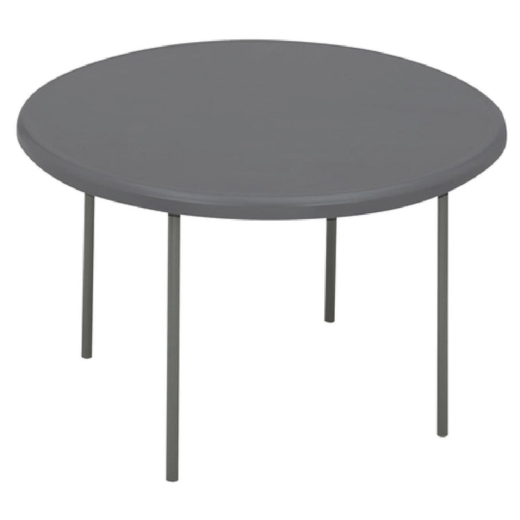 The Forbes Industries RS60RDCC-CC Resilient® IndestrucTableTOOSeries™ Folding Table is a highly durable and versatile solution for both commercial and hospitality settings. This round table features a generous 60-inch diameter and stands 29 inches high, making it suitable for a variety of functions. The table's top is crafted from a lightweight, 2-inch thick blow-molded high-density charcoal polyethylene, offering a robust and resilient surface that is both dent and scratch resistant. Its beveled edge design adds a touch of sophistication while maintaining functionality. The table is supported by a 1-inch tubular steel frame, complete with bracing for added stability, and heavy gauge gravity-lock steel legs ensure secure positioning. These legs feature a powder-coated charcoal matte finish, enhancing the table's aesthetic appeal and durability. Additionally, the design includes non-marring plastic floor glides, protecting flooring surfaces from damage. This folding table is easily washable and designed to withstand the demands of frequent use, making it an ideal choice for event planners, caterers, and venues requiring adaptable and long-lasting furniture solutions. With an estimated lead time of 2-3 weeks, the Forbes Industries RS60RDCC-CC folding table is a practical and reliable investment for diverse market needs.