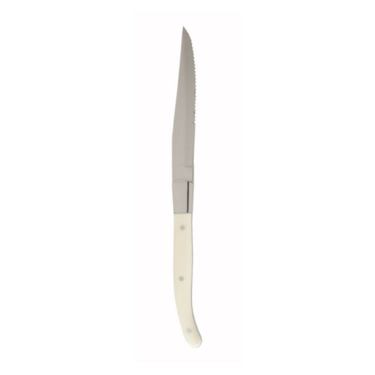 Fortessa 1.5-STK-00-240 Provencal Steak Knife 9.25" (23cm) Blonde Handle is a premium tableware solution designed for both functionality and elegance. This steak knife features a blonde handle that complements its sophisticated appearance, making it suitable for upscale dining experiences. Constructed from 18/10 stainless steel, the knife offers exceptional durability and resistance to corrosion, ensuring long-lasting performance in both residential and commercial settings. The serrated edge enhances its cutting capability, allowing for effortless slicing through steaks and other meats. With a weight of 0.17 each, the knife provides a well-balanced feel in hand, offering comfort and precision during use. Designed for convenience, it is dishwasher safe, allowing for easy cleaning and maintenance. Each case includes six knives, making it a practical choice for restaurants and catering services looking to equip their tables with high-quality cutlery. The Fortessa Provencal Steak Knife is a versatile option for various market segments within the culinary industry, combining aesthetic appeal with practical features that meet the demands of both home cooks and professional chefs alike.
