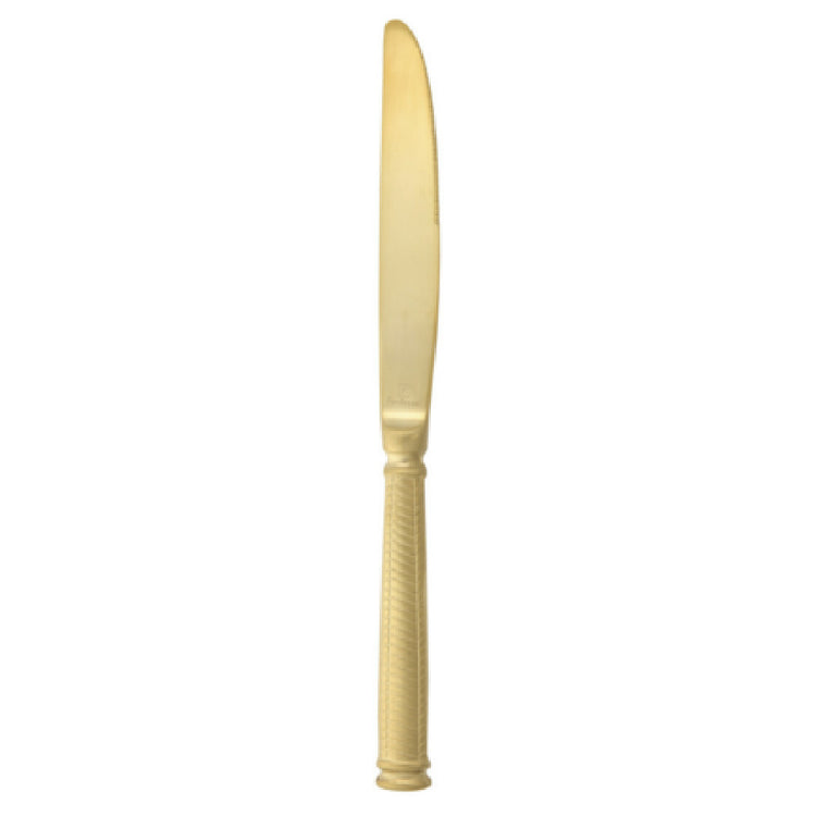 The Fortessa 1.9B.134.00.005 Table Knife 9.6" (24.5cm) Brushed is a premium dining utensil designed for both residential and commercial settings. Crafted from 18/10 stainless steel, this table knife offers outstanding durability and resistance to corrosion, making it a reliable choice for long-term use. The brushed finish provides an elegant and modern aesthetic that complements a variety of table settings, enhancing the dining experience. Measuring 9.6 inches (24.5cm) in length, the knife features a solid handle that ensures a comfortable and balanced grip, promoting ease of use during meal service. This product is also dishwasher safe, offering convenience and efficiency in cleaning, which is particularly beneficial for high-volume establishments such as restaurants and catering services. The Fortessa table knife is part of the Vivi collection, distinguished by its refined design and superior quality. Each knife weighs 0.13 pounds, and they are packaged per case containing 12 pieces, making it a practical option for bulk purchasing. The knife's combination of functionality, style, and ease of maintenance renders it an excellent choice for various market segments, from upscale dining venues to everyday domestic use, where quality tableware is desired.