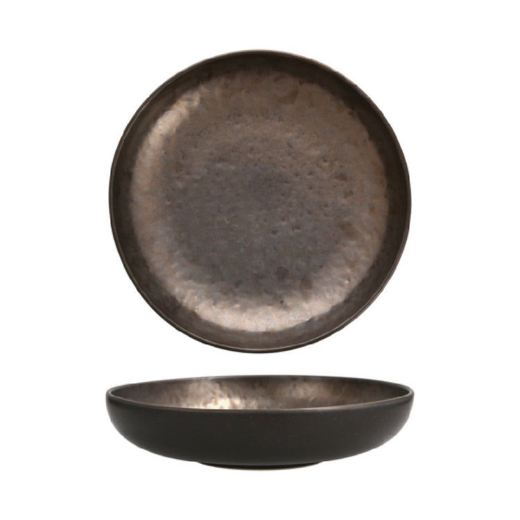 The Fortessa D752-126-0000 Nivo Metallic Plate is a sophisticated tableware piece, meticulously crafted for versatility in various dining settings. With a diameter of 26cm and a depth of 2.1 inches, this plate is designed in a deep coupe style, providing ample space for presenting culinary creations. Weighing in at 1.09 each and packaged six per case, it embodies both functionality and aesthetic appeal. Its metallic finish adds a touch of elegance, making it suitable for upscale restaurants, catering events, and home dining experiences that seek to elevate presentation standards. The plate's substantial capacity of 59 ounces caters to diverse serving needs, from generous main courses to decadent desserts. This Fortessa plate is not only a practical choice for professional chefs and hospitality businesses but also for individuals who appreciate high-quality tableware. Its robust design ensures durability, making it a valuable asset in any culinary environment. As a product of Fortessa Tableware Solutions, it stands as a testament to quality and innovation, meeting the demands of various market segments within the dining industry.
