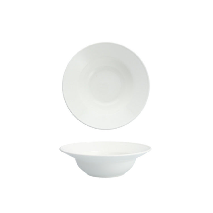 The Fortessa HBW-00-714 Andromeda Deep Soup Bowl 8.25" (21cm) 13 Oz. is meticulously crafted from high-quality bone China, offering both elegance and durability. This deep soup bowl measures 8.25 inches (21 cm) in diameter, holding up to 13 ounces of liquid, making it an ideal choice for serving soups, stews, or pasta dishes. Its design seamlessly integrates functionality with style, perfect for both casual and formal dining settings. The bowl is dishwasher safe, ensuring easy and convenient cleaning. It is also microwave safe, allowing for effortless reheating of meals, and oven safe up to 400°F, providing versatility in food preparation and presentation. Each bowl weighs 0.97 pounds, signifying a well-balanced and easily manageable addition to any table setting. Packed efficiently by case, with 24 pieces per case, this product is suited for large-scale usage in hospitality settings like hotels, restaurants, and catering services, as well as for personal or retail use. The Fortessa HBW-00-714 Andromeda Deep Soup Bowl stands out as a premium dining choice, engineered to meet the high standards required in both commercial and household environments.
