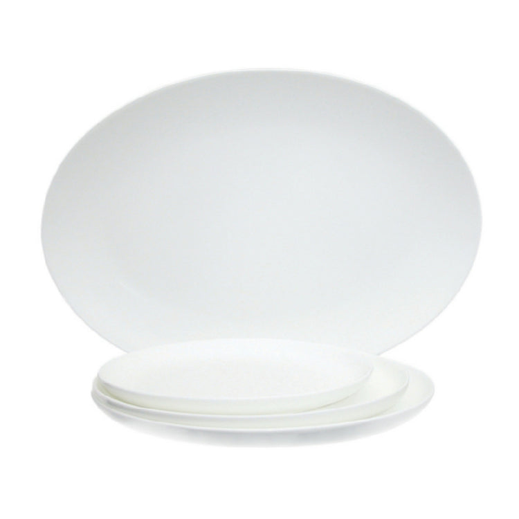 The Fortessa HBW-00-820 Purio Platter 13.75" (35cm) Coupe is a versatile and elegant piece designed for various settings, from casual dining to upscale events. Made from high-quality bone China, this platter offers a blend of durability and sophistication. Its coupe shape and oval design provide a modern aesthetic that complements a wide range of tableware. The platter is sized at 13.75 inches (35cm), making it suitable for serving a variety of dishes, from appetizers to main courses. With a weight of 2.4 each, it ensures stability while handling. The Fortessa HBW-00-820 is dishwasher, microwave, and oven safe, withstanding temperatures up to 400°F. This makes it a practical choice for both serving and reheating food. Packed by case, each case contains six platters, allowing for easy bulk purchasing for restaurant and hospitality businesses. The Fortessa Purio Platter is ideal for industry professionals seeking a reliable and elegant presentation solution that seamlessly integrates into any dining experience. Its combination of practicality and style makes it a valuable addition to any kitchen or dining establishment, offering both aesthetic appeal and functional versatility.