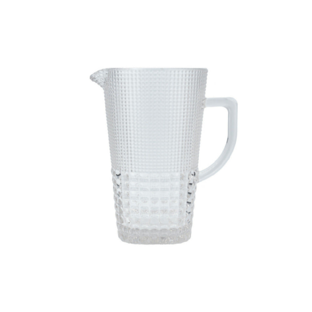 The Fortessa MALCOLMCL.05 Malcolm Pitcher Large 50.7 Oz. (1.5L) is a distinguished piece from Fortessa Tableware Solutions, crafted to meet diverse needs within the tableware industry. Boasting a generous capacity of 50.7 ounces (1.5 liters), this clear pitcher is designed to efficiently serve in both domestic and professional settings, including restaurants and catering services. Weighing approximately 1.3 each, it combines functionality with a lightweight design, making it easy to handle and pour. Its clear construction allows for easy visibility of contents, enhancing the presentation of beverages. Especially suitable for large gatherings or events, its substantial volume reduces the frequency of refills, ensuring seamless service. This pitcher stands out not just for its practicality but also for its sleek and modern aesthetic, making it a versatile addition to any table setting. Whether used for serving water, iced tea, or any preferred beverage, the Fortessa MALCOLMCL.05 Malcolm Pitcher provides a reliable and stylish solution. It is an excellent choice for those seeking a balance of capacity, ease of use, and visual appeal in their tableware.