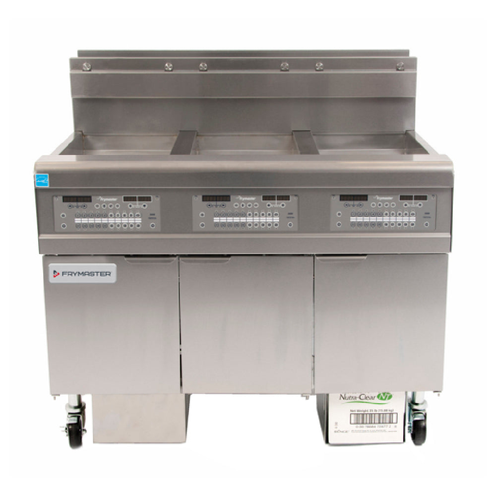 The Frymaster FPGL330CA_NAT Frymaster® OCF30™ Fryer Battery is a gas-powered commercial fryer system with an impressive setup of three fryers, each offering a substantial 30 lb. oil capacity. This model is designed to enhance efficiency and performance in high-demand kitchens, featuring oil-conserving technology and an open-pot design that promotes even cooking. Integral to its operation is the SMART4U® 3000 controller, which provides precise electronic control and monitoring. It includes an electronic ignition system and an auto top-off feature to maintain optimal oil levels, reducing manual intervention. The fryer also comes equipped with built-in filtration, improving oil longevity and food quality. For user convenience, the package includes a rack-type back support, basket hanger, twin baskets, and a filter starter kit, ensuring the fryer is ready for immediate use. Constructed with stainless steel for durability, this fryer system has adjustable casters for easy mobility. With a substantial heat output of 210,000 BTU, it is CSA, NSF, and ENERGY STAR® certified, highlighting its compliance with safety and energy efficiency standards. The Enerlogic® technology further emphasizes its commitment to sustainability, making it an ideal choice for professional kitchens seeking reliable and eco-friendly frying solutions.