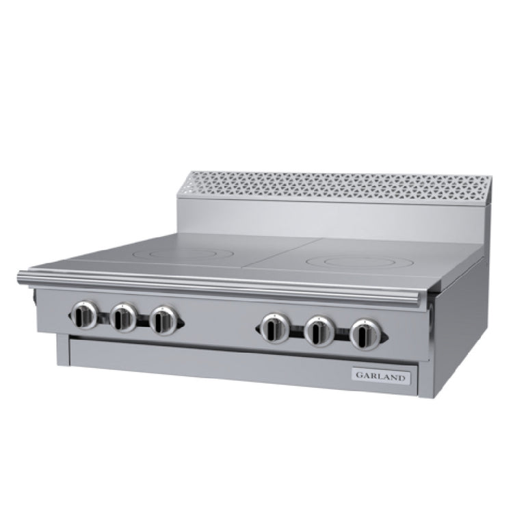 The Garland C36-10M Garland Cuisine Series Heavy Duty Range Gas is a 36-inch modular unit, specifically engineered for demanding culinary environments. It features two 18-inch front-fired hot tops, which are complemented by removable lids and rings, offering versatility and efficiency in food preparation. The range is designed with a 7-inch high backguard, ensuring protection and durability during operation. Constructed with a stainless steel front, sides, plate rail, and burner box, it embodies a robust build, promising longevity and resilience in high-use settings. The Garland C36-10M is powered by a substantial 75,000 BTU output, delivering consistent and powerful heat necessary for professional kitchens. Certified by CSA Flame, CSA Star, and NSF, this range aligns with industry standards for safety and quality. Its adaptable design makes it suitable for various market segments within the food service industry, including restaurants, catering services, and institutional kitchens, where reliability and high-performance cooking equipment are critical. The modular nature of this range offers flexibility in kitchen layouts, making it a practical choice for chefs seeking customizable cooking solutions without compromising on performance or durability.