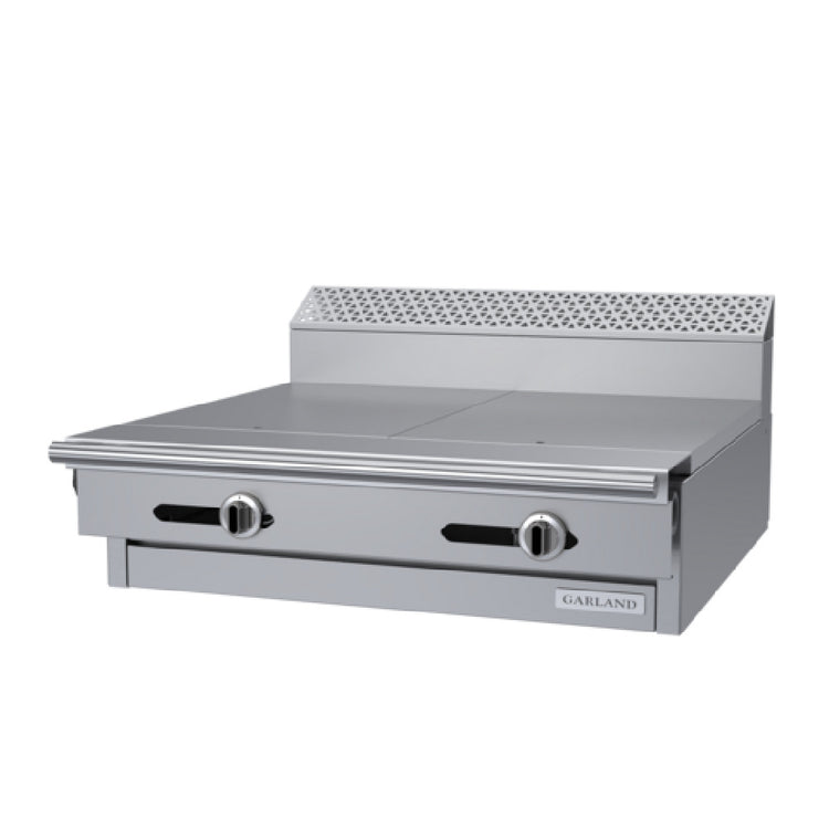 The Garland C36-9M Garland Cuisine Series Heavy Duty Range - gas, 36" - modular top, is a professional-grade kitchen appliance designed to meet the rigorous demands of commercial kitchens. This range features two 18" even heat hot tops, providing consistent thermal distribution essential for precise cooking. Its 7" high backguard ensures safety and cleanliness by protecting the surrounding surfaces from heat and splatter. Constructed with a robust stainless steel front, sides, plate rail, and burner box, this range offers durability and a sleek aesthetic. With a powerful output of 65,000 BTU, it is engineered to handle high-volume cooking efficiently. The Garland C36-9M is CSA Flame and CSA Star certified, signifying its adherence to stringent safety and performance standards. Additionally, it is NSF certified, marking its compliance with public health regulations. This range is an ideal choice for restaurants, hotels, and catering services that require a reliable and high-performing cooking solution. Its modular design allows for versatile kitchen configurations, making it a flexible option for various culinary applications. The combination of its technical specifications and certifications makes the Garland C36-9M a compelling choice for any commercial kitchen seeking efficiency, durability, and safety.