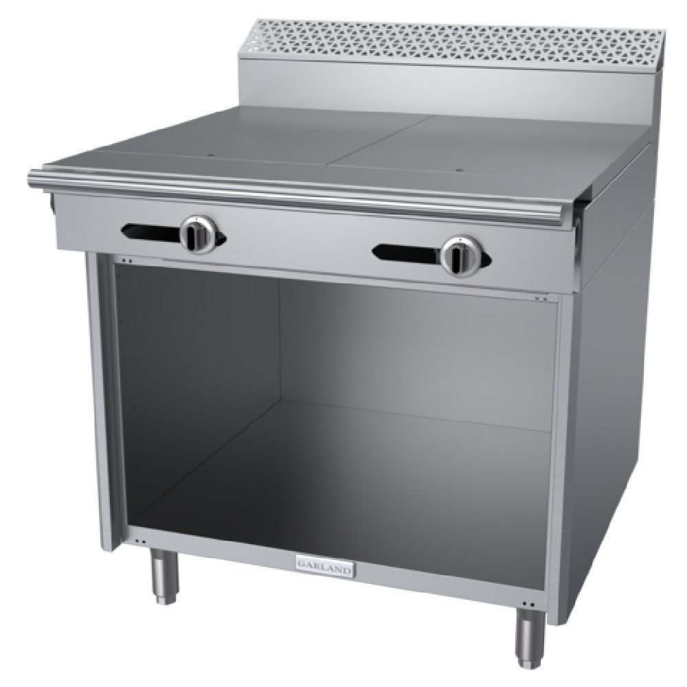The Garland C36-9S Garland Cuisine Series Heavy Duty Range - gas, 36" is an essential asset for professional kitchens seeking durability and performance. This heavy-duty range is designed with (2) 18" even heat hot tops, ensuring consistent heat distribution for optimal cooking results. The open cabinet base provides convenient storage for kitchen essentials, enhancing operational efficiency. Featuring a 7"H backguard, this range offers additional protection against spills and splashes. Its stainless steel construction, including the front, sides, plate rail, and burner box, ensures longevity and ease of maintenance. The 6" adjustable legs allow for customizable height, adapting to various kitchen environments. With a powerful 65,000 BTU output, this range meets the demanding needs of high-volume cooking. Certified by CSA Flame, CSA Star, and NSF, it adheres to rigorous safety and sanitation standards, making it a reliable choice for diverse culinary establishments. The Garland C36-9S embodies a blend of robust engineering and practical design, making it suitable for different market segments within the foodservice industry, from bustling restaurants to industrial kitchens, all requiring a dependable and efficient cooking solution.