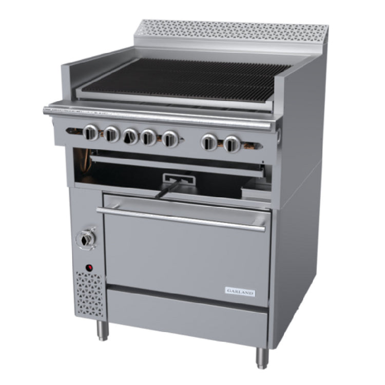The Garland C36-ARR Garland Cuisine Series Heavy Duty Range Gas is a versatile 36-inch unit designed for high-performance cooking in professional kitchens. It features a charbroiler with an underfired broiler setup, enhancing cooking efficiency and flavor. The range incorporates cast iron radiants and adjustable top grates, tailored for chefs requiring precise heat control and durability. A standard oven is part of the package, complete with one rack for varied cooking needs. The build quality is evident in its stainless steel components, including the stub-back, front, sides, front rail, and burner box, ensuring longevity and ease of cleaning. Equipped with 6-inch adjustable legs, the range caters to different kitchen heights and configurations. With a substantial heat output of 148,000 BTU (NG), the Garland C36-ARR meets the rigorous demands of commercial cooking. It is certified by CSA Flame, CSA Star, and NSF, attesting to its safety and performance standards. Designed for restaurants, catering businesses, and large-scale food operations, this heavy-duty range provides a reliable and efficient solution for diverse culinary applications, supporting chefs in delivering high-quality dishes consistently.