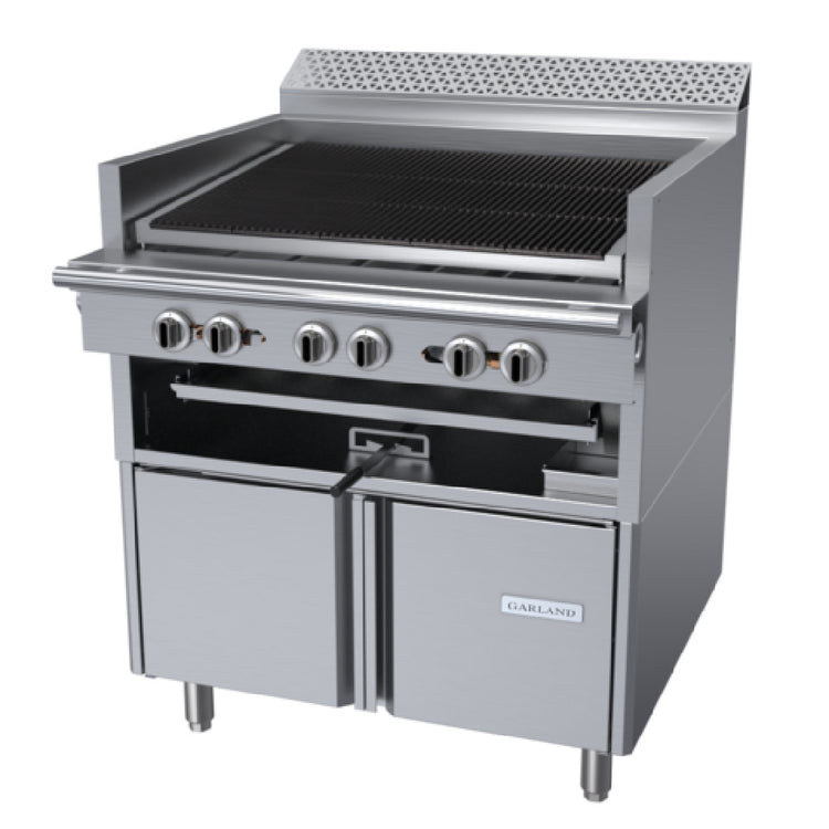 The Garland C36-ARS Garland Cuisine Series Heavy Duty Range Gas is a versatile and robust cooking solution, designed to meet the demanding needs of professional kitchens. Measuring 36 inches, this heavy-duty range features a charbroiler and an underfired broiler, providing a powerful combination for diverse cooking techniques. Equipped with cast iron radiants and adjustable top grates, it offers flexibility and durability to withstand high-volume usage. The open cabinet base provides ample storage space for kitchen essentials, enhancing operational efficiency. Constructed with a stainless steel stub-back, front, sides, front rail, and burner box, this range ensures longevity and easy maintenance. The six-inch adjustable legs provide stability on uneven surfaces, accommodating various kitchen layouts. With an impressive output of 108,000 BTU, this range delivers superior heat distribution and cooking performance. Certified by CSA Flame, CSA Star, and NSF, the Garland C36-ARS ensures compliance with rigorous safety and sanitation standards. Ideal for restaurants, hotels, and catering services, this range seamlessly integrates into any professional kitchen, offering a reliable and efficient cooking experience. Its high-capacity and durable design make it a valuable asset for both small-scale operations and large culinary establishments.