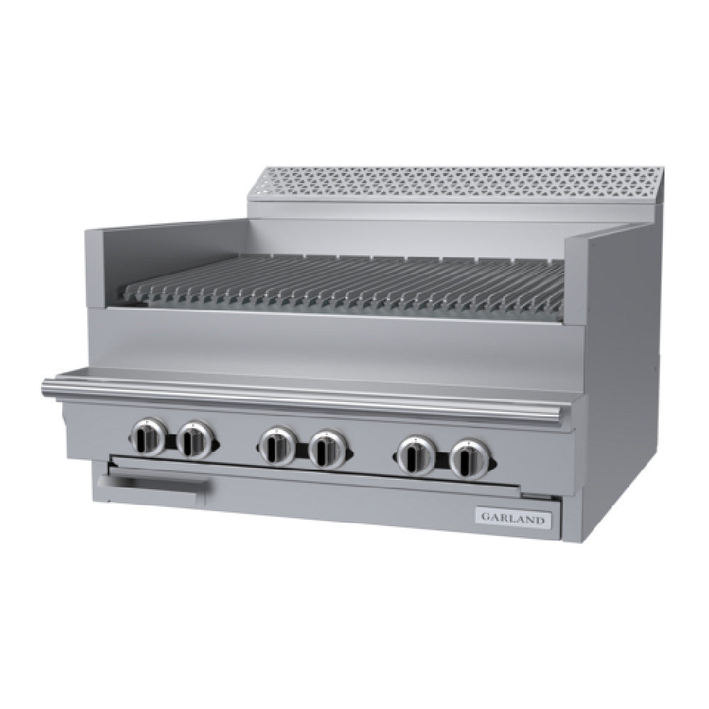 The Garland C36-NRM Garland Cuisine Series Heavy Duty Range Gas is a 36-inch modular top appliance, designed for precision and durability in demanding kitchen environments. This versatile range features a high-performance charbroiler and an underfired broiler, both engineered with cast iron radiants for superior heat retention and distribution. The fixed cast iron grid assembly ensures stability and uniform cooking temperatures, making it ideal for commercial kitchens that require consistent and reliable cooking results. Encased in a robust stainless steel construction, including the stub-back, front, sides, front rail, and burner box, this range is built to withstand the rigors of heavy-duty use. With an impressive output of 108,000 BTU, it provides the power necessary to meet the demands of a bustling food service operation. Certified by CSA Flame, CSA Star, and NSF, the Garland C36-NRM not only adheres to high safety and performance standards but also integrates seamlessly into any professional kitchen. Whether used in a restaurant, hotel, or catering service, this heavy-duty range offers an exceptional blend of functionality and durability, making it a valuable addition to any culinary setup that requires robust and efficient cooking solutions.