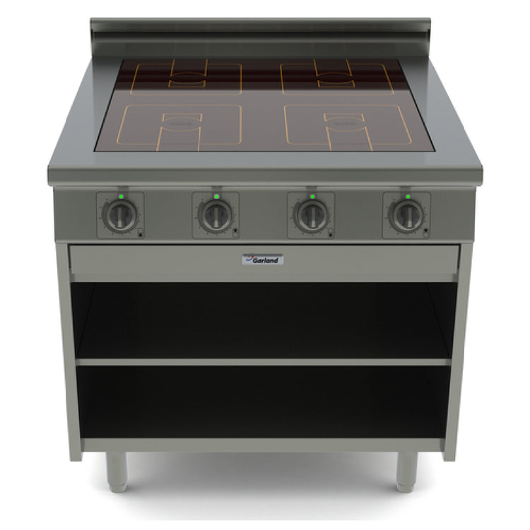 The Garland GME36-I14S Master Induction Range Electric Floor Model is a high-performance kitchen appliance designed for professional settings. This induction range features four 3.5 kW hobs, offering a powerful cooking solution with a total output of 14.0 kW. The appliance boasts a spacious 28.5 x 28.5-inch cooking surface, crafted with a durable Ceran® glass top that ensures efficient heat distribution and easy cleaning. Integrated with the advanced RTCSmp technology, the range supports automatic pan detection and boil dry protection, enhancing both safety and energy efficiency. Constructed with premium stainless steel, the GME36-I14S reflects both durability and a sleek aesthetic suitable for modern kitchens. The range operates on a 208v/60/3-ph electrical connection, drawing 44.0 amps, making it a robust choice for high-demand environments. In addition to its cooking capabilities, the unit includes a convenient storage base, providing practical utility in busy culinary settings. The Garland GME36-I14S is ideal for restaurants, catering services, and institutional kitchens, offering a blend of advanced induction technology and robust construction to meet the varied needs of professional chefs and kitchen operations.