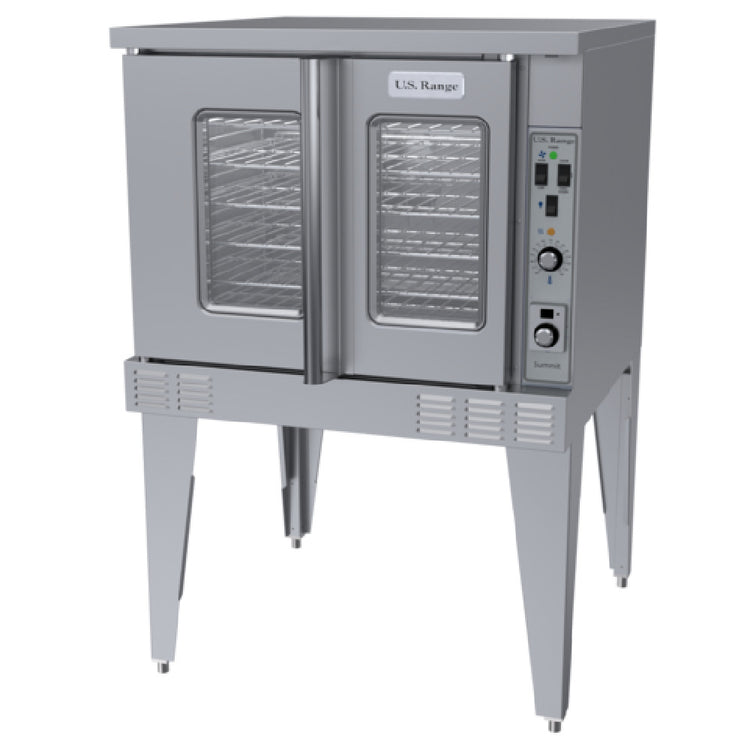 Garland, SUME-100-SIGNATURE HIGH VOLTAGE, Signature Summit Series Convection Oven, electric, single-deck, solid state controls with 150° - 500° F, electromechanical thermostat and 60 minute timer, (5) chrome plated (13) position oven racks per deck, dependant 60/40 doors with double paned thermal windows, stainless steel front, sides, top, 25-1/2" legs, porcelain cavity, 10.4kW, UL, cUL, NSF (USRange)