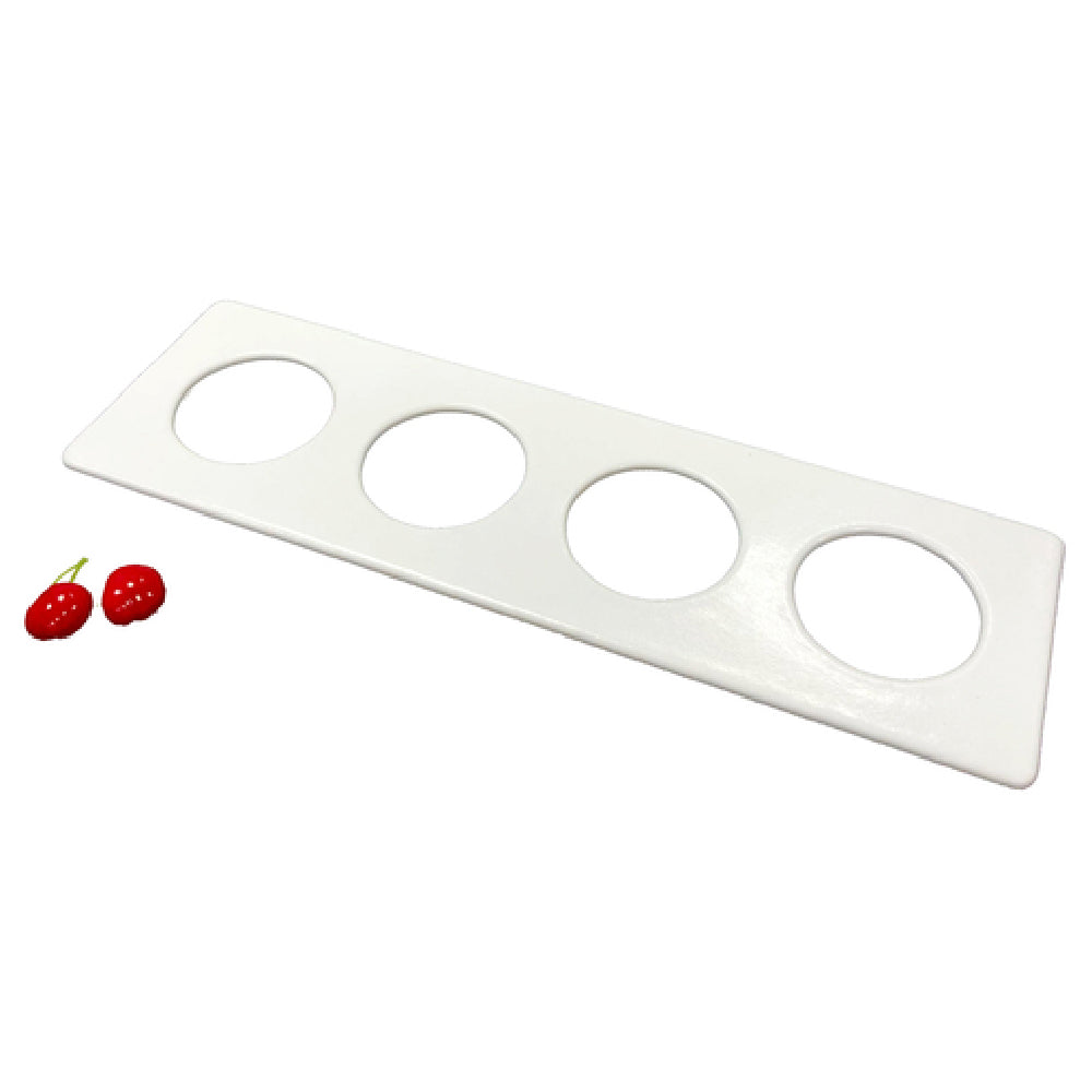 The GET Enterprises 1/2LIDL4-MOD-WW Bugambilia® Fit Perfect™ Tile 1/2-size Long 20-3/16"L x 6-3/16"W x 3/4"H is a specialized serving solution designed for diverse food service environments. Its dimensions of 20-3/16 inches in length, 6-3/16 inches in width, and 3/4 inches in height make it an optimal choice for efficient space utilization in various culinary settings. This tile holds up to four dressing bottles, specifically models SDB-32-PC-B and SDB-16-PC-B, highlighting its versatility in catering to different portion sizes and presentation preferences. Constructed from cast aluminum with a durable resin coating, the product ensures longevity and resistance to wear, while its smooth MOD finish in white contributes to a clean and professional aesthetic. Furthermore, the tile's dishwasher-safe feature facilitates easy cleaning, enhancing operational efficiency in high-volume environments. This product is packed individually, ensuring secure handling and delivery. Ideal for restaurateurs, caterers, and hospitality professionals, the GET Enterprises 1/2LIDL4-MOD-WW Bugambilia® Fit Perfect™ Tile seamlessly combines functionality with style, offering a practical solution for those looking to optimize their serving options while maintaining a sleek presentation. Its robust construction and thoughtful design make it a valuable asset in food service operations demanding both durability and elegance.