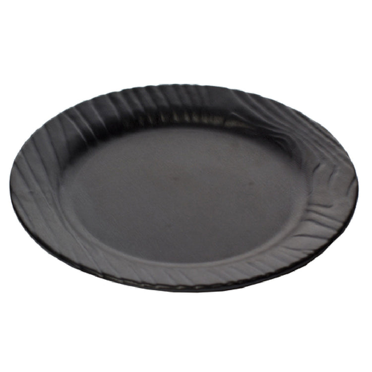 The GET Enterprises 15003216001 Cheforward Sustain Rim Plate is a meticulously designed dining solution with a 10-inch diameter and a 1-inch height that caters to various segments within the foodservice industry. Crafted from high-quality black melamine, this round plate combines durability with an elegant aesthetic, making it suitable for both casual and upscale dining environments. Its BPA-free construction underscores a commitment to safety, while its dishwasher-safe attribute ensures ease of maintenance, appealing to busy commercial kitchens and catering services. This product is packed in cases of six, providing an efficient bulk option for restaurants and hospitality businesses looking to maintain consistency in their tableware offerings. The GET Enterprises 15003216001 Cheforward Sustain Rim Plate stands out for its unique blend of style and practicality, constructed to withstand the demands of high-volume service without compromising on visual appeal. Its robust melamine material replicates the look of ceramic while being significantly more resistant to breakage, making it a smart choice for outdoor dining settings and high-traffic venues. This versatile plate fulfills the needs of chefs and restaurateurs seeking reliable, sustainable, and visually appealing tableware solutions.