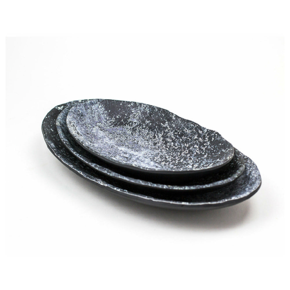 GET Enterprises 15005083007 Cheforward Endure Plate 10-1/4"L x 6-1/10"W x 1-3/5"H Medium is a meticulously crafted dining solution designed for versatility and durability across various foodservice environments. This medium-sized, oval plate is constructed from high-quality melamine, combining an aesthetically appealing weathered pewter finish with exceptional strength. Measuring 10-1/4 inches in length, 6-1/10 inches in width, and 1-3/5 inches in height, it provides an ideal platform for presenting a wide array of culinary creations. Engineered to be dishwasher safe, this plate ensures easy cleaning and maintenance, making it a practical choice for busy kitchens. The plate is also BPA free, addressing health and safety concerns by removing potentially harmful chemicals. Packed by 12 each per case, it is an efficient choice for large-scale operations seeking a consistent and reliable dining ware solution. The Cheforward Endure Plate is designed for establishments prioritizing durability without compromising on style, serving as an optimal choice for restaurants, catering services, and hospitality events where presentation and practicality are paramount. Its robust design and industry-standard compliance make it an essential component for enhancing both the functionality and aesthetic of food presentations.