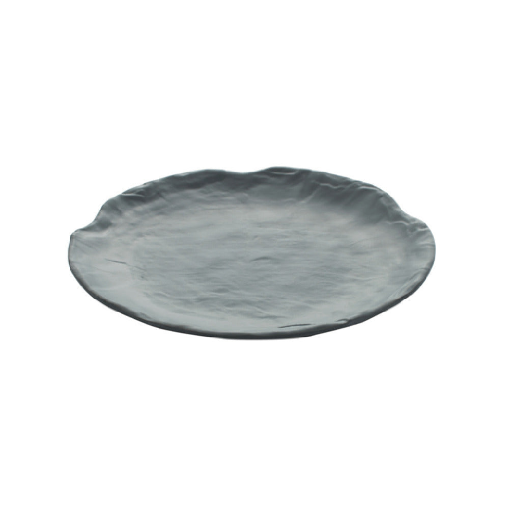 The GET Enterprises 15005111005 Endure Plate 10" Dia. X 1-2/5"H Round is a meticulously crafted dining solution, ideal for various segments within the food service industry. With its precise dimensions of 10 inches in diameter and a height of 1-2/5 inches, this plate is designed to accommodate a range of culinary presentations, from appetizers to desserts. Constructed from high-quality melamine, it combines durability with a sophisticated aesthetic, making it an excellent choice for both high-volume restaurants and casual dining establishments. The weathered onyx finish adds a touch of elegance, enhancing table settings with its subtle yet distinctive appearance. The Endure Plate is packed 24 each per case, offering convenience and value for businesses looking to optimize their inventory. Its robust design ensures longevity, even under rigorous use, making it a reliable option for catering services and hospitality venues looking to maintain a stylish yet practical dining experience. This plate's combination of form and function ensures it meets the dynamic needs of the modern food service industry, providing a versatile and dependable element to any professional kitchen.