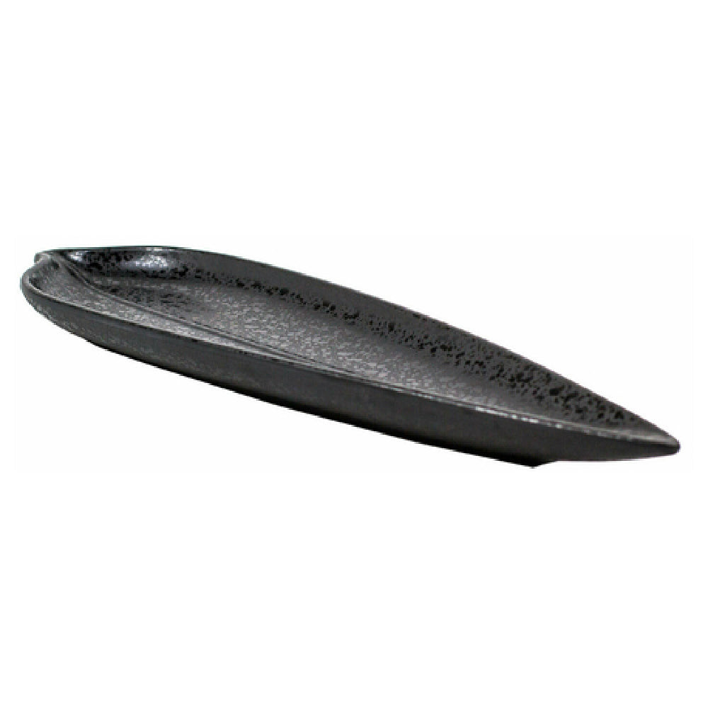 The GET Enterprises 15018131024 Cheforward Rainex Leaf Platter is an oblong serving dish measuring 14-1/5 inches in length, 3-9/10 inches in width, and 1-1/10 inches in height, crafted to emulate the natural elegance of a leaf shape. This platter is a versatile and visually striking addition to any dining setting, particularly suitable for restaurants, catering services, and hospitality environments that seek to elevate their presentation standards. Made from durable melamine, this platter offers the sophisticated appearance of fine china with the added benefits of being lightweight and shatter-resistant, making it ideal for high-traffic usage. The platter’s showered black finish adds a contemporary touch to its design, enhancing the aesthetics of any dish served upon it. Its BPA-free construction ensures that it is safe for food service, aligning with health-conscious dining preferences. Furthermore, the platter is dishwasher safe, allowing for efficient cleaning and maintenance in fast-paced food service environments. Offered in a bulk packaging of 12 per case, the GET Enterprises 15018131024 Cheforward Rainex Leaf Platter is a practical choice for businesses looking to maintain both style and functionality in their tableware offerings.