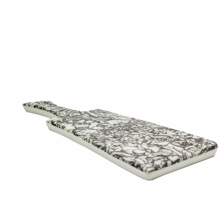 The GET Enterprises 15019051034 Cheforward Lapis Board is a rectangular serving solution designed for versatility across various industry segments. With dimensions of 15-1/2 inches in length, 6 inches in width, and a height of 1/2 inch, this board offers a compact yet ample surface for culinary presentation. Its construction from melamine ensures durability and resistance to breakage, while being BPA-free highlights its commitment to safety and health standards. The inclusion of a handle adds convenience, making it easy to transport from kitchen to table. A striking pinolith agate design replicates the appearance of natural stone, adding an aesthetic appeal suitable for fine dining establishments or casual eateries alike. This board is dishwasher safe, allowing for efficient and hassle-free cleaning, which is ideal for high-volume food service operations. Packed six per case, it provides an economical choice for businesses seeking to enhance their serving ware collection. The GET Enterprises Cheforward Lapis Board exemplifies a blend of beauty and functionality, catering to the needs of restaurants, catering services, and hospitality venues that require reliable and stylish serving options. Its thoughtful design and material specifications make it a practical choice for professionals in the food service industry.