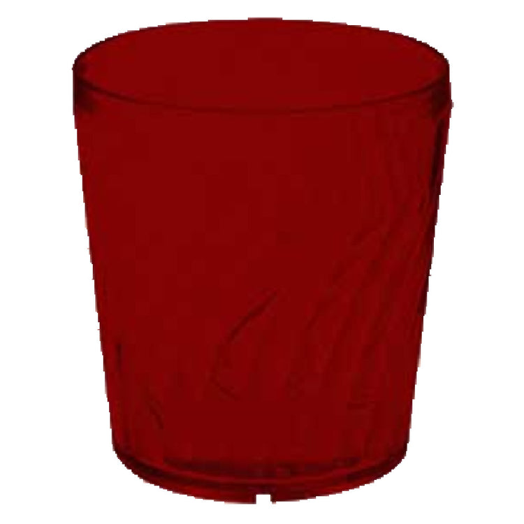 The GET Enterprises 2209-1-R Tahiti™ Rocks Tumbler 9 Oz. (11.95 Oz. Rim Full) is a premium drinking vessel crafted for both durability and aesthetic appeal, making it a significant choice in the hospitality industry. With a precise measurement of 3-1/4 inches in diameter and 3-1/2 inches in height, this tumbler is designed to accommodate 9 ounces of liquid with ease, extending up to 11.95 ounces when filled to the brim. The tumbler's textured surface provides an enhanced grip, ensuring comfort and safety during use. Made from BPA-free SAN, a type of plastic known for its strength and resistance to impact, this tumbler promises longevity and resilience, making it an ideal choice for high-traffic environments such as bars and restaurants. Available in a vibrant red color, it adds a touch of elegance and vibrancy to any table setting. Furthermore, it is NSF certified, guaranteeing that it meets strict standards for public health protection. Packed at a rate of 6 dozen per case, it ensures efficient stocking and availability for large-scale food service operations. The GET Enterprises 2209-1-R Tahiti™ Rocks Tumbler is a versatile product, perfect for those seeking a reliable and stylish solution for serving beverages.