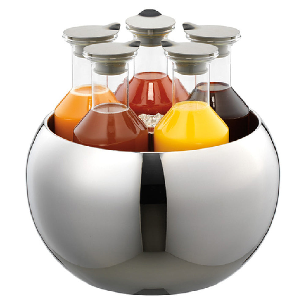 GET Enterprises 3148061 Frilich® Carafine Beverage Tub Set 13-4/5" Dia. X 12-3/5"H Includes: (5) 1.3 Qt. (1.2 Liter) Tritan Plastic Carafes With Stainless Steel Lids - 1/Case