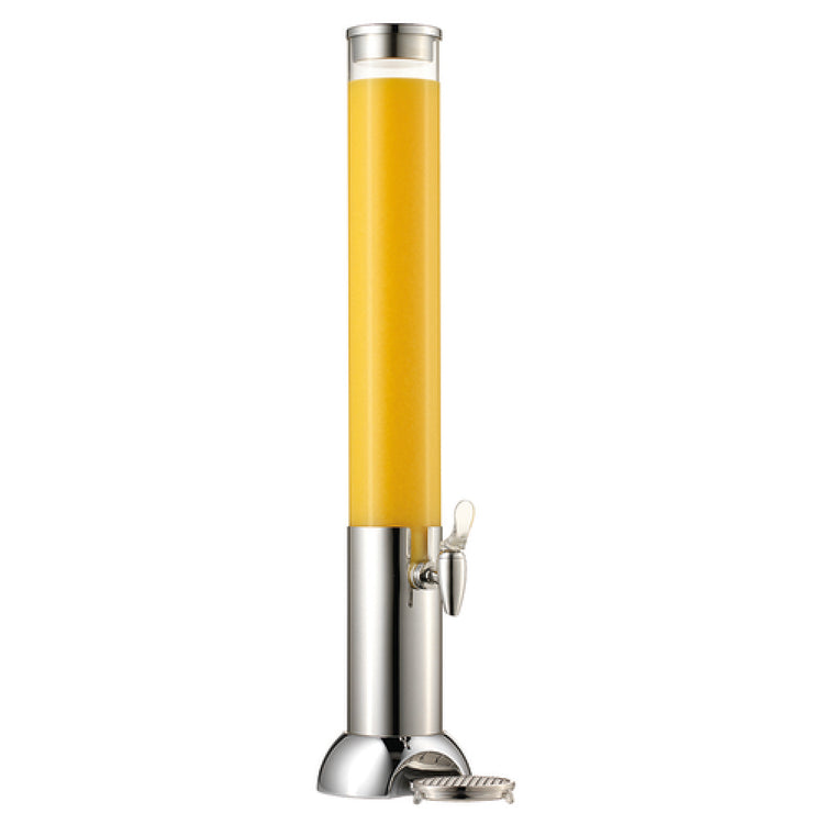 The GET Enterprises 3158071 Frilich® Connect Juice Dispenser Set 4.2 Qt. (1.1 Gallon / 4 Liter) is a versatile beverage solution designed to meet the needs of various industry segments, from hospitality to catering services. This dispenser set features a substantial 4.2-quart (1.1-gallon or 4-liter) capacity, making it suitable for both small and medium-sized events. The set includes a high-quality acrylic container, which is both durable and visually appealing, complemented by a matching lid for secure storage and freshness. At 6-7/10 inches in diameter and standing 32-1/2 inches tall, it is a compact yet capacious option that fits seamlessly into diverse service settings. The integrated faucet allows for easy pouring, ensuring a smooth and efficient operation during busy service hours. Cooling packs are strategically located in the lid and base, maintaining optimal beverage temperature without the need for electricity. The stainless steel drip tray and base contribute to both the dispenser's functionality and its sleek aesthetic. Each set is packed individually, ensuring that all components arrive in pristine condition. This juice dispenser set blends practicality with style, making it an essential addition to any venue requiring reliable, efficient beverage service.