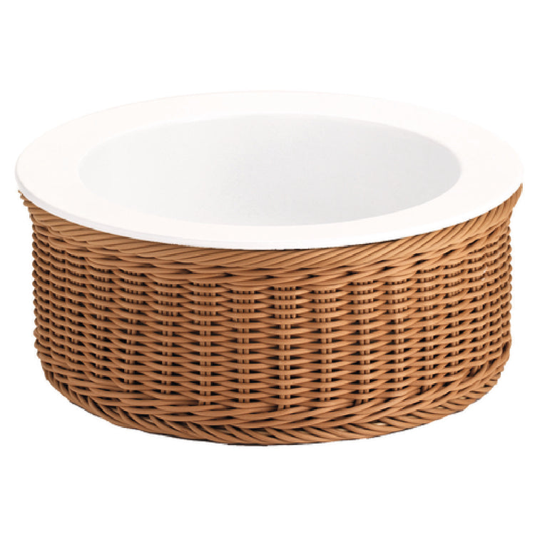 The GET Enterprises 3254050 Frilich® Picknick Cold Food Display Set presents an elegant and practical solution for showcasing cold foods in various hospitality settings. This round display set measures 12-1/5 inches in diameter and 5-7/10 inches in height, making it a compact yet impactful addition to buffets and catered events. The set includes a refined white china plate that adds a touch of sophistication to any presentation. To maintain optimal food temperatures, a cooling pack is included, ensuring contents remain fresh throughout service. The insulated basin enhances temperature retention, making it ideal for busy service environments. The display set is supported by a tan plastic wicker basket base, which offers both stability and a rustic aesthetic that complements diverse design themes. Supplied as a single set, this display is particularly suited for establishments prioritizing style and functionality in food presentation. Its thoughtful design makes it adaptable to the needs of different market segments within the food service industry, from upscale hotels to casual outdoor catering events. With its combination of durable materials and practical features, the GET Enterprises 3254050 Frilich® Picknick Cold Food Display Set stands out as a versatile tool for professional culinary presentations.