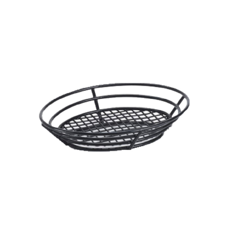 The GET Enterprises 4-38808 Basket 8" X 6" X 2-1/4" Oval is a meticulously designed piece tailored for various sectors within the hospitality and catering industries. With dimensions of 8 inches by 6 inches and a height of 2-1/4 inches, this basket is crafted to meet the versatile needs of restaurants, cafes, and catering events. Its oval shape coupled with a raised grid base enhances its functionality, ensuring stability and efficient air flow, which is particularly beneficial for serving hot or freshly prepared items. The basket is coated with iron polyethylene, lending it a durable finish that is both resilient and easy to clean, thereby extending its lifespan even with frequent use. Available in an elegant black color, the basket complements a wide array of table settings and décor styles. Packed conveniently by 12 each per case, it provides an economical choice for bulk buyers while ensuring sufficient supply during high-demand periods. This combination of durability, practicality, and aesthetic appeal makes the GET Enterprises 4-38808 Basket a valuable asset across different market segments in the food service industry.